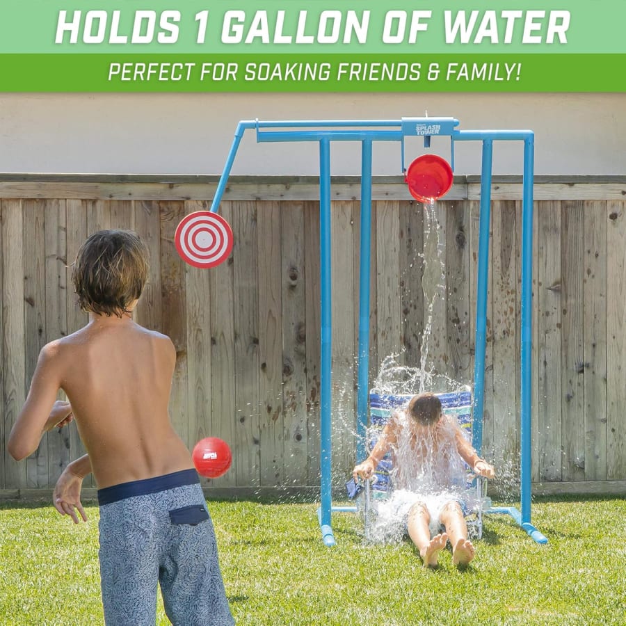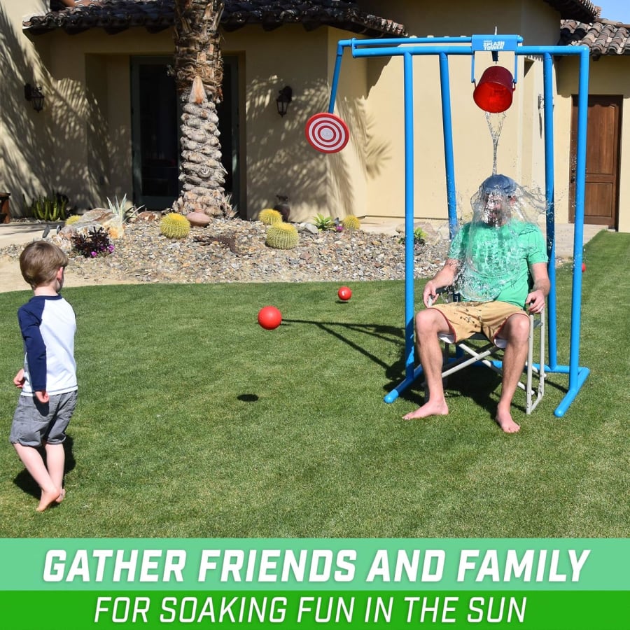 One player sits or stands under the Splash Tower bucket. Opponents take turns throwing the included balls at the target. Hit the target and the bucket tips. Get ready to get soaked! Simple rules. Big reactions. Endless replay value. 🎯💦
