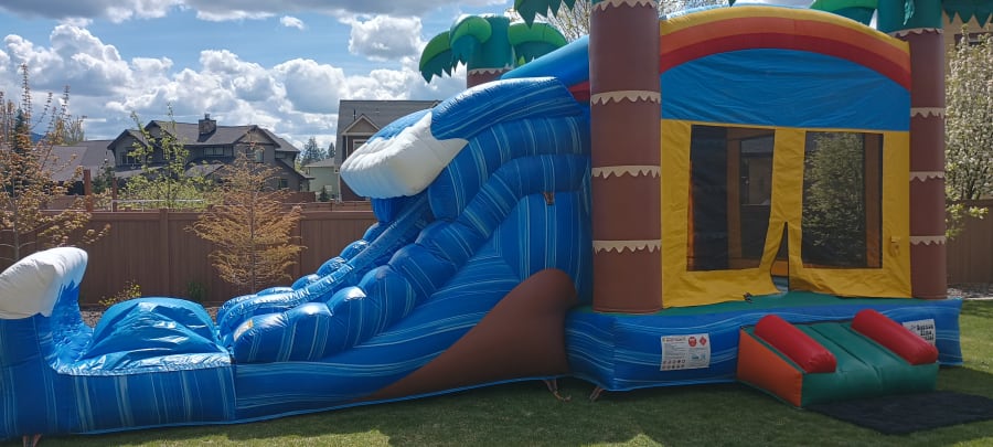 The 2-Lane Tropical Combo is a top pick for summer fun. This colorful inflatable combines a roomy bounce area with a two-lane slide. Use it wet or dry for backyard parties, school events, or community gatherings. Kids of all ages will stay entertained for hours. The unit measures 32L x 17W x 17H, making it spacious yet easy to place. 🌊🎉