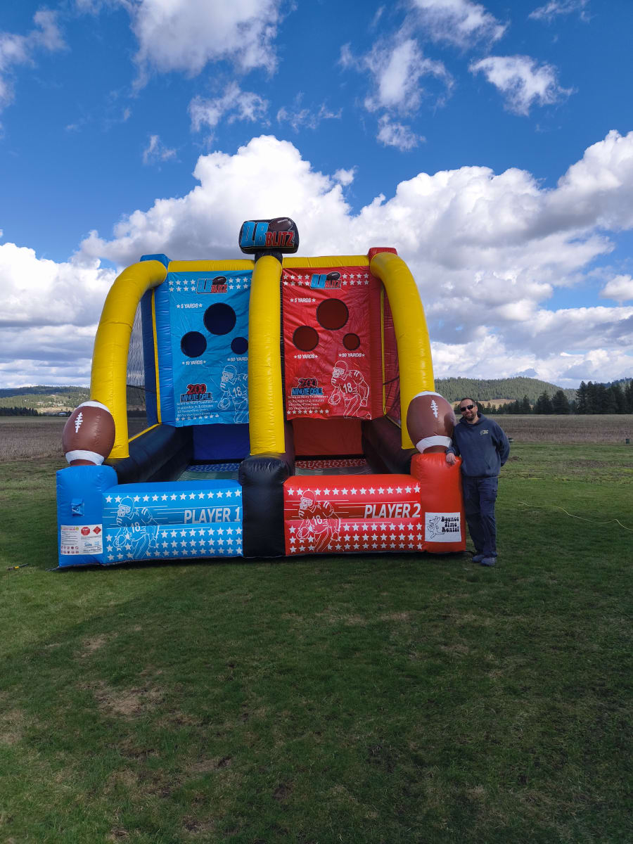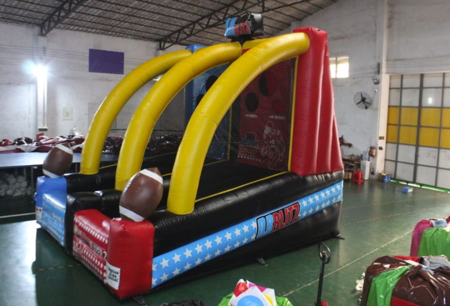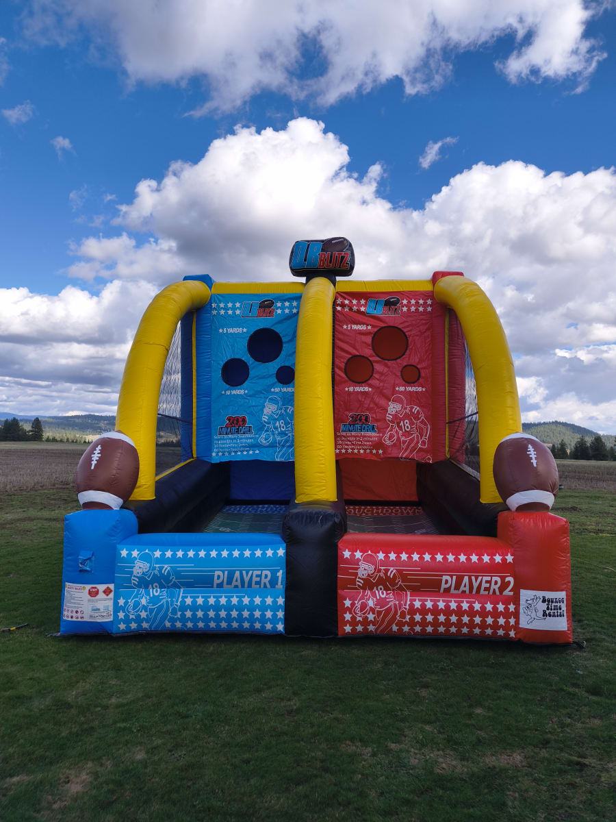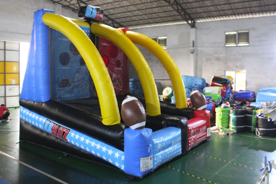The QB BLITZ Inflatable Game XL delivers head-to-head excitement with a dual lane football throw. Fast setup and intense competition make it ideal for birthdays, teams, special events, and tailgates. This is a large inflatable game that will require a 16'+ ceiling clearance than our other games which are more compact. Perfect for small or large groups craving competitive fun. ๐