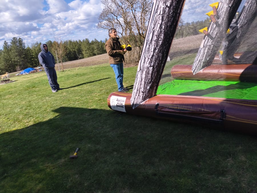 The Inflatable Double Axe Throwing Game delivers head-to-head excitement. Dual lanes let two players compete at once. Compact footprint with big impact: 10'L x 16'W x 8.7'H. Perfect for parties, team-building, school events, and backyard tournaments.